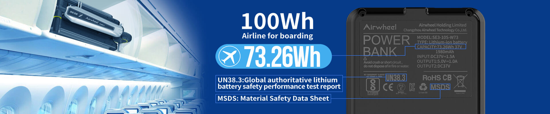 The Airwheel electric luggage features a 73.26Wh removable battery that meets global airline standards. The capacity is true to spec, delivering reliable performance for frequent travelers.